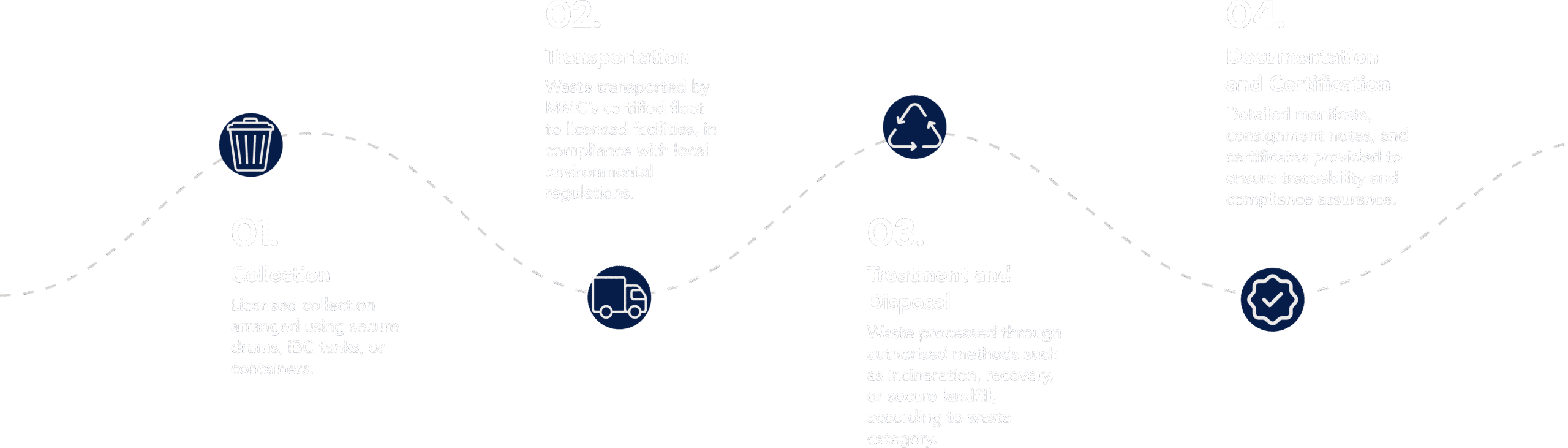 Waste transported by MMC’s certified fleet to licensed facilities, in compliance with local environmental regulations.