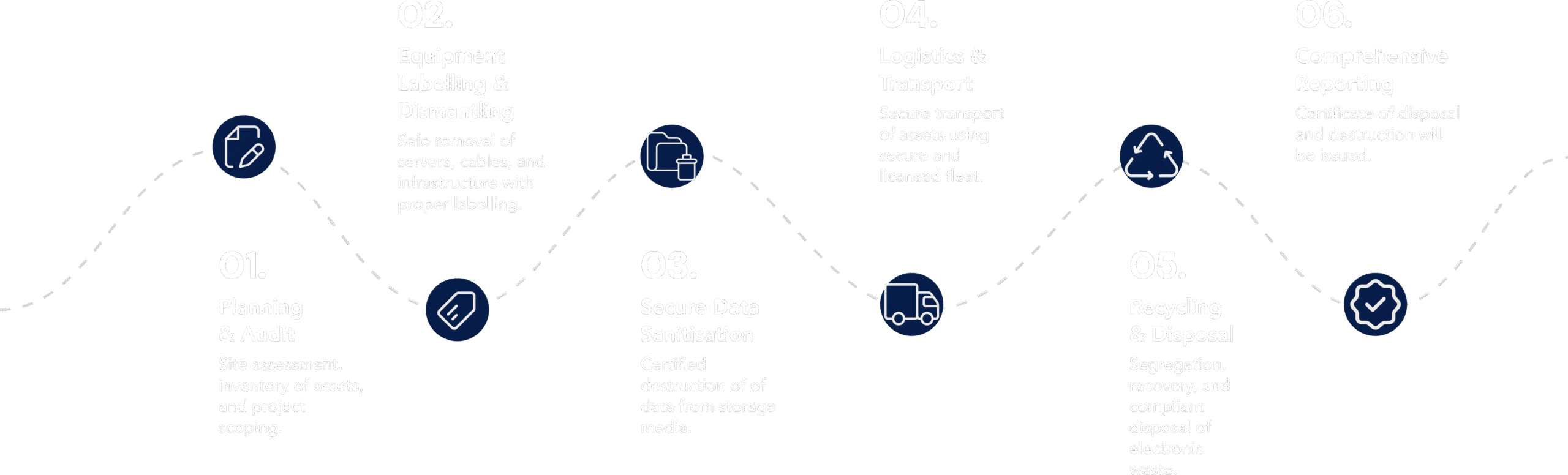 We provide comprehensive decommissioning services tailored to data centre environments, covering safe removal of IT or telecommunication assets, certified data destruction, and secure disposal. Our process prioritises security, regulatory compliance, and minimal environmental impact.